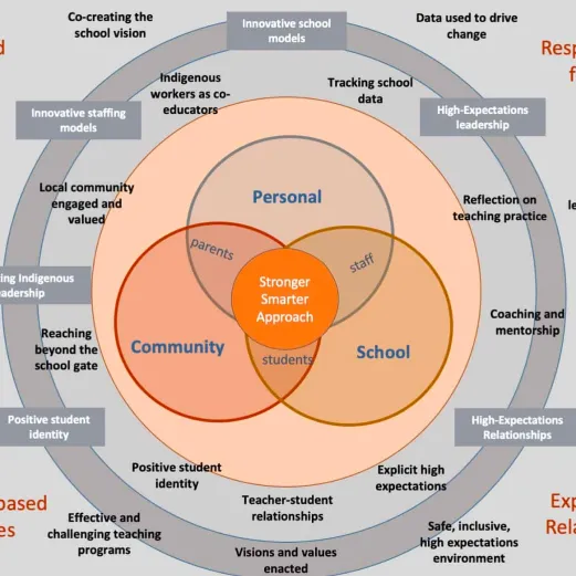We know that Aboriginal and Torres Strait Islander children will succeed in school when the classroom is a place where they can be proud of their culture, the standards are high, and the curriculum is relevant to their lives. This is the Strong and Smart classroom developed by Dr Chris Sarra at Cherbourg.